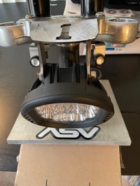 Get them in time for Christmas. Elegant Hella LED driving light w/ 2100 lumens matched to a laser cut and welded bracket designed to place light at perfect level for optimal brightness. A perfect HD #1 cut in the center for some charm and holes for indicator lights if you so choose (See Options below). These will be available raw steel or Black powdercoat. Mounts to original top tree eyebrow mounts (4.062" center) and comes with hardware.